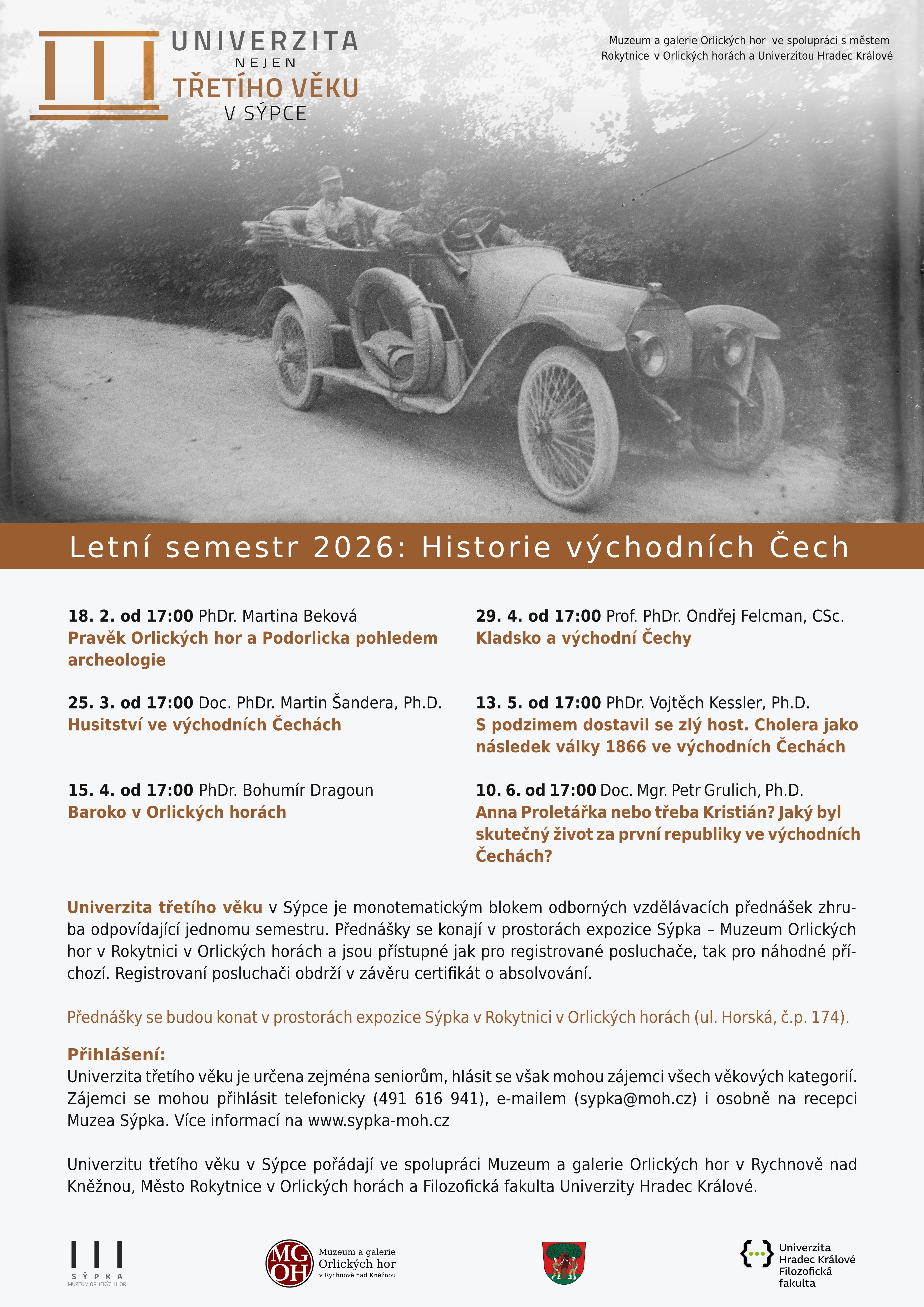 Máte rádi historii a chcete si ji užít v příjemné společnosti? Přijďte na cyklus přednášek Historie východních Čech, který připravilo Muzeum a galerie Orlických hor ve spolupráci s městem Rokytnice v Orlických horách a Filozofickou fakultou Univerzity Hradec Králové.