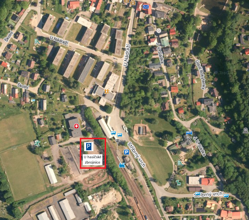 Po dobu realizace stavby využívejte náhradní parkovací plochu vedle Hasičské zbrojnice, na pozemku parc. č. 123/4 v k. ú. Rokytnice v Orlických horách, dle přiložené mapky.